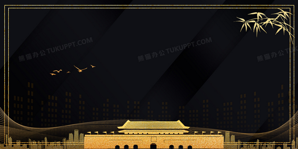 本作品内容为党政风天安门黑金简约背景, 格式为 psd, 大小65 MB, 图片尺寸为4724 x 2362, 作品中背景图片无需修改, 源文件无水印,可以直接使用, 欢迎使用熊猫办公。 如认为平台内容涉嫌侵权,可通过邮件:tousu@tukuppt.com提出书面通知,我们将及时处理。