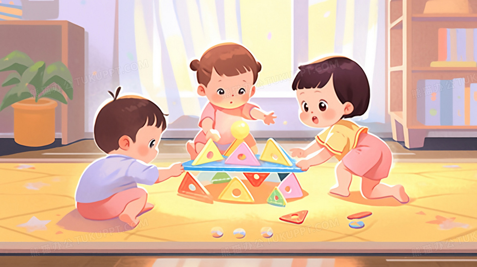 本作品内容为幼儿园里一起玩游戏的小孩们插画, 格式为 jpg, 大小2 MB, 图片尺寸为2912 x 1632, 源文件无水印, 欢迎使用熊猫办公。 如认为平台内容涉嫌侵权,可通过邮件:tousu@tukuppt.com提出书面通知,我们将及时处理。