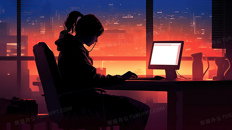 本作品内容为商务办公熬夜加班办公深夜插画, 格式为 jpg, 大小2 MB, 图片尺寸为2912 x 1632, 源文件无水印, 欢迎使用熊猫办公。 如认为平台内容涉嫌侵权,可通过邮件:tousu@tukuppt.com提出书面通知,我们将及时处理。