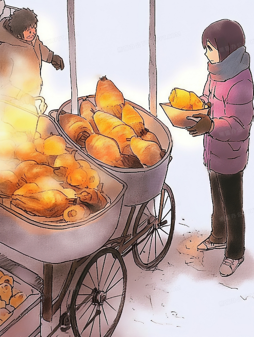 本作品内容为冬日里热气腾腾的小吃摊插画, 格式为 jpg, 大小4 MB, 图片尺寸为1856 x 2464, 源文件无水印, 欢迎使用熊猫办公。 如认为平台内容涉嫌侵权,可通过邮件:tousu@tukuppt.com提出书面通知,我们将及时处理。