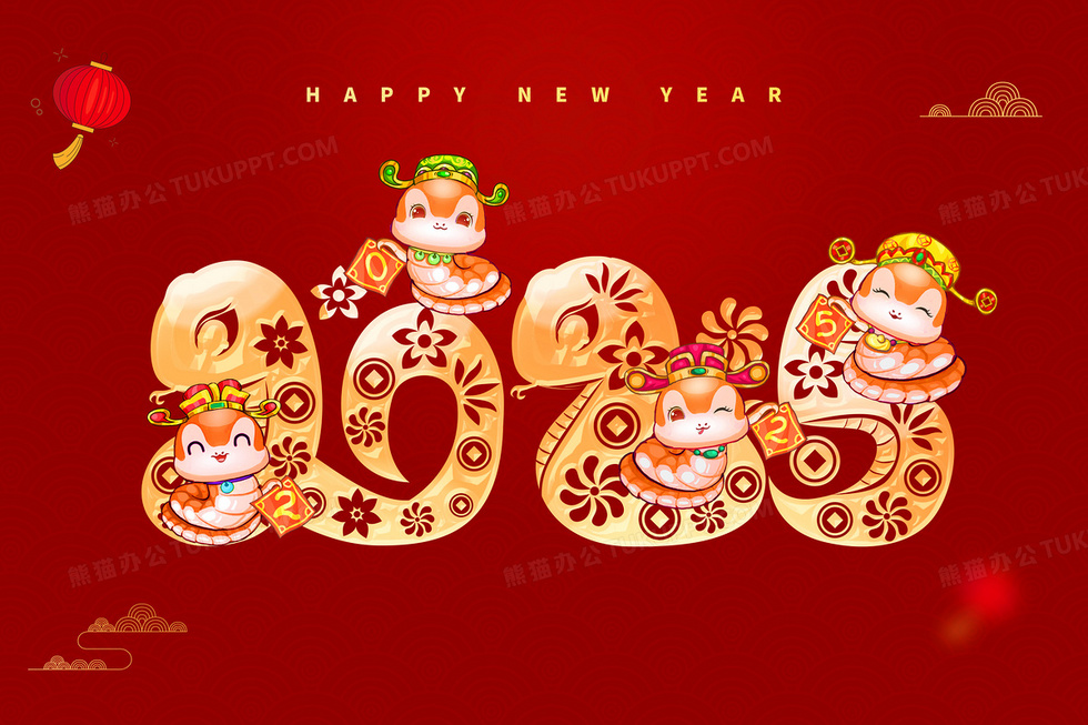 本作品内容为喜庆春节中国风2025蛇年插画, 格式为 psd, 大小65 MB, 请使用软件PhotoShop(CS6)打开, 源文件无水印, 欢迎使用熊猫办公。 如认为平台内容涉嫌侵权,可通过邮件:tousu@tukuppt.com提出书面通知,我们将及时处理。