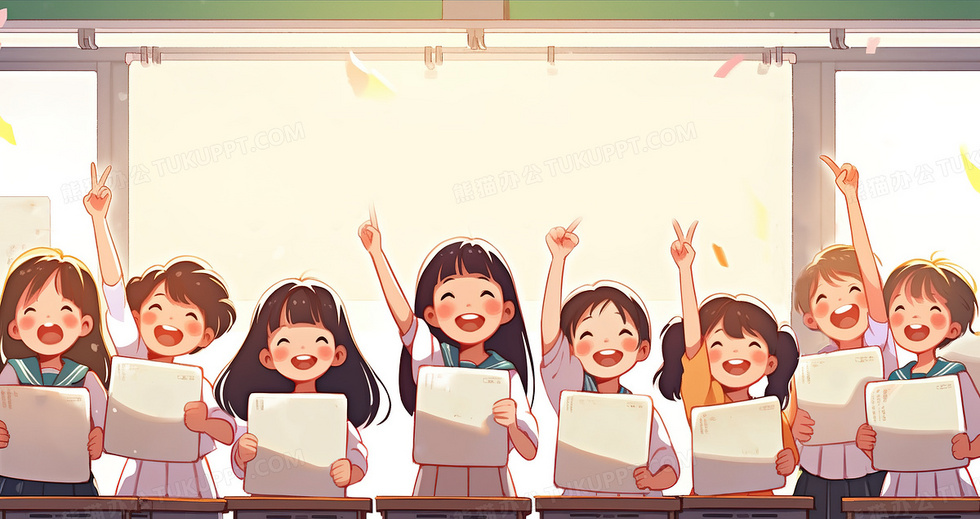 本作品内容为教室里可爱的学生们开心的高举试卷庆祝创意插画, 格式为 jpg, 大小5 MB, 图片尺寸为2912 x 1542, 源文件无水印, 欢迎使用熊猫办公。 如认为平台内容涉嫌侵权,可通过邮件:tousu@tukuppt.com提出书面通知,我们将及时处理。