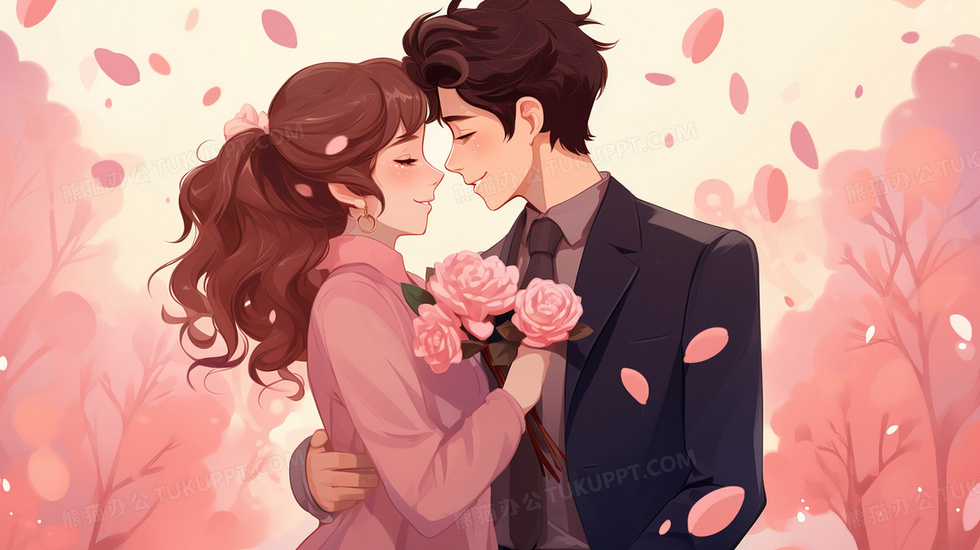 本作品内容为手握花束拥抱的情侣插画, 格式为 jpg, 大小4 MB, 图片尺寸为2912 x 1632, 源文件无水印, 欢迎使用熊猫办公。 如认为平台内容涉嫌侵权,可通过邮件:tousu@tukuppt.com提出书面通知,我们将及时处理。