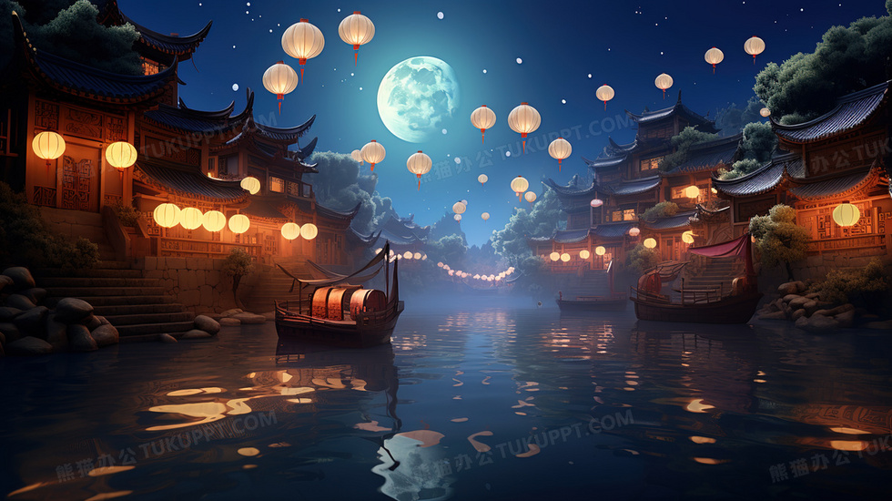 本作品内容为元宵节挂满灯笼的河边古城建筑插画, 格式为 jpg, 大小5 MB, 图片尺寸为2912 x 1632, 源文件无水印, 欢迎使用熊猫办公。 如认为平台内容涉嫌侵权,可通过邮件:tousu@tukuppt.com提出书面通知,我们将及时处理。