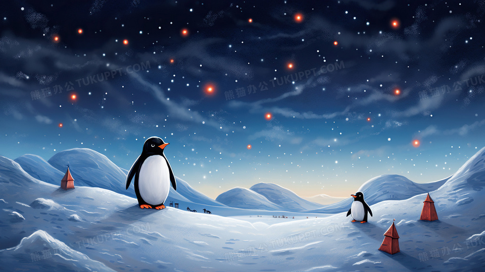 本作品内容为冬天雪地风景卡通企鹅插画, 格式为 jpg, 大小6 MB, 图片尺寸为2912 x 1632, 源文件无水印, 欢迎使用熊猫办公。 如认为平台内容涉嫌侵权,可通过邮件:tousu@tukuppt.com提出书面通知,我们将及时处理。