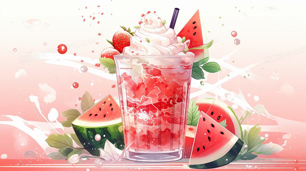 本作品内容为夏日饮料冷饮水果西瓜插画, 格式为 jpg, 大小18 MB, 图片尺寸为5824 x 3264, 源文件无水印, 欢迎使用熊猫办公。 如认为平台内容涉嫌侵权,可通过邮件:tousu@tukuppt.com提出书面通知,我们将及时处理。