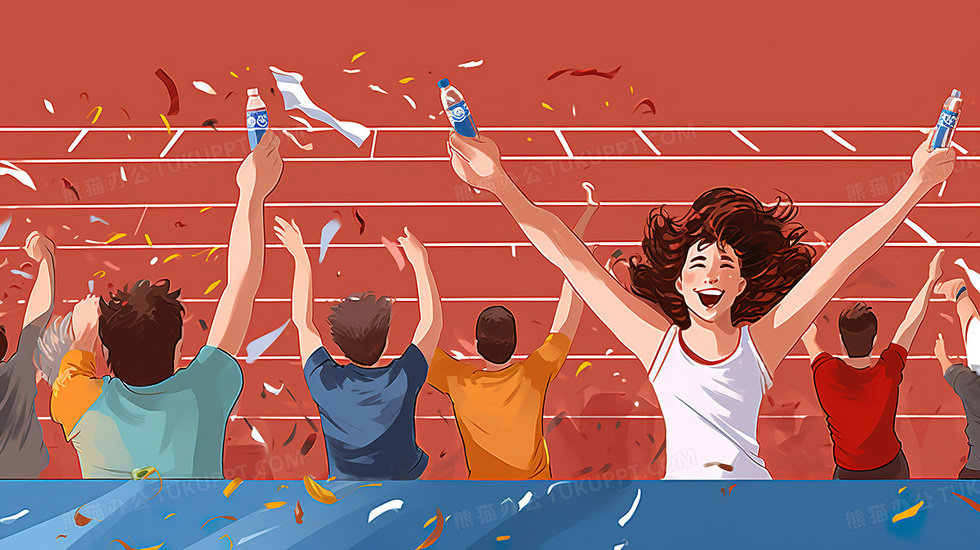 本作品内容为赛场上观众们欢呼庆祝的背影插画, 格式为 jpg, 大小5 MB, 图片尺寸为2912 x 1632, 源文件无水印, 欢迎使用熊猫办公。 如认为平台内容涉嫌侵权,可通过邮件:tousu@tukuppt.com提出书面通知,我们将及时处理。