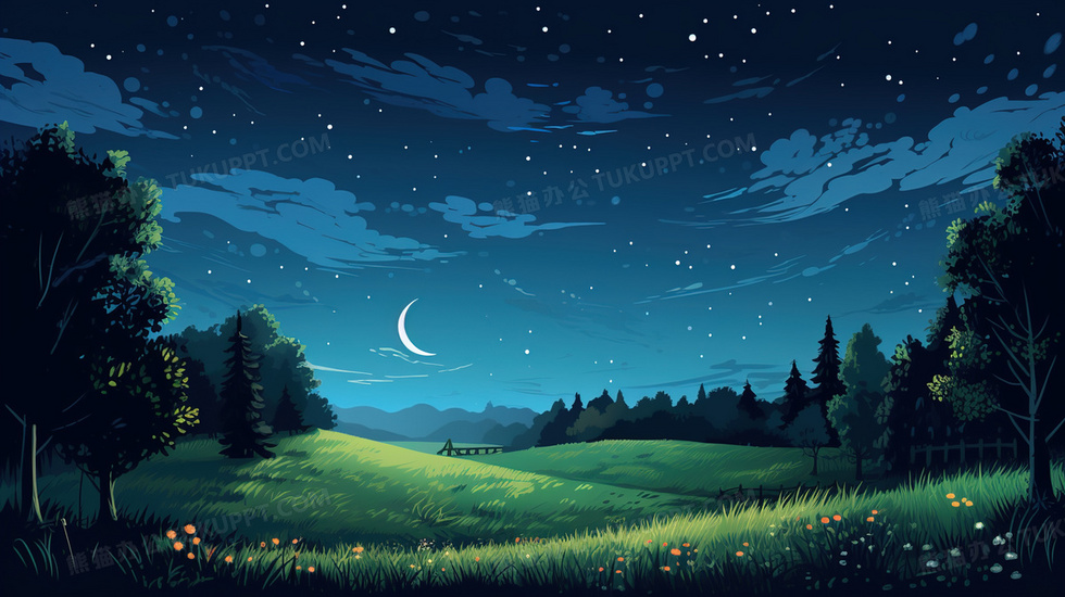 本作品内容为唯美夏日夜晚风景插画, 格式为 jpg, 大小5 MB, 图片尺寸为2912 x 1632, 源文件无水印, 欢迎使用熊猫办公。 如认为平台内容涉嫌侵权,可通过邮件:tousu@tukuppt.com提出书面通知,我们将及时处理。