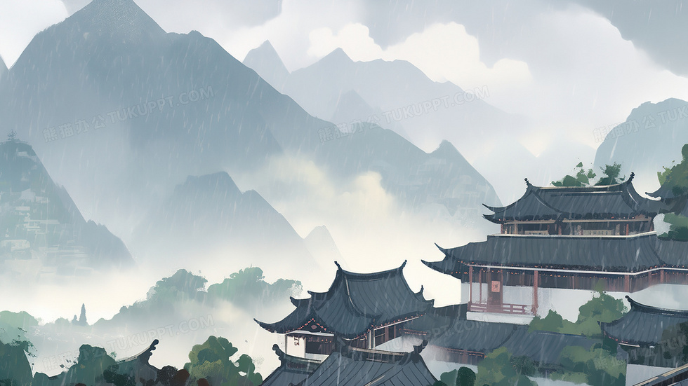 本作品内容为清明节气美丽的雨中村庄插画, 格式为 jpg, 大小2 MB, 图片尺寸为2764 x 1554, 源文件无水印, 欢迎使用熊猫办公。 如认为平台内容涉嫌侵权,可通过邮件:tousu@tukuppt.com提出书面通知,我们将及时处理。