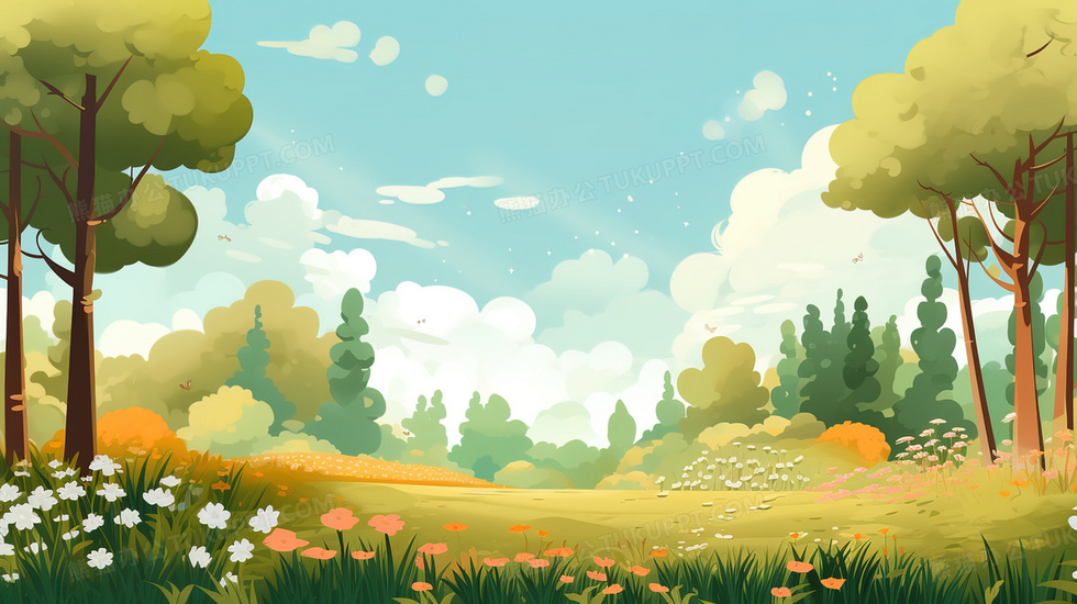 本作品内容为山林里的乡间小道旁的草地花丛春日美景插画, 格式为 jpg, 大小5 MB, 图片尺寸为2912 x 1632, 源文件无水印, 欢迎使用熊猫办公。 如认为平台内容涉嫌侵权,可通过邮件:tousu@tukuppt.com提出书面通知,我们将及时处理。