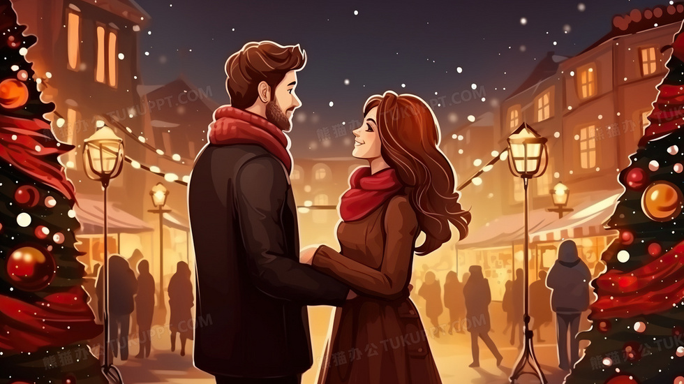 本作品内容为卡通圣诞节圣诞情侣约会插画, 格式为 jpg, 大小5 MB, 图片尺寸为2912 x 1632, 源文件无水印, 欢迎使用熊猫办公。 如认为平台内容涉嫌侵权,可通过邮件:tousu@tukuppt.com提出书面通知,我们将及时处理。