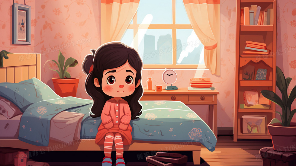 本作品内容为卡通女孩冬季在卧室床上插画, 格式为 jpg, 大小5 MB, 图片尺寸为2912 x 1632, 源文件无水印, 欢迎使用熊猫办公。 如认为平台内容涉嫌侵权,可通过邮件:tousu@tukuppt.com提出书面通知,我们将及时处理。