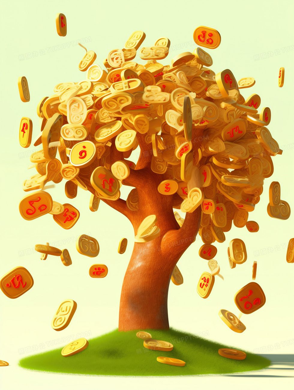 本作品内容为一棵金光闪闪的摇钱树插画, 格式为 jpg, 大小6 MB, 图片尺寸为1856 x 2464, 源文件无水印, 欢迎使用熊猫办公。 如认为平台内容涉嫌侵权,可通过邮件:tousu@tukuppt.com提出书面通知,我们将及时处理。