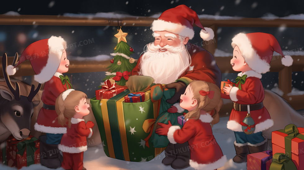 本作品内容为圣诞老人派送圣诞礼物插画, 格式为 jpg, 大小6 MB, 图片尺寸为2912 x 1632, 源文件无水印, 欢迎使用熊猫办公。 如认为平台内容涉嫌侵权,可通过邮件:tousu@tukuppt.com提出书面通知,我们将及时处理。