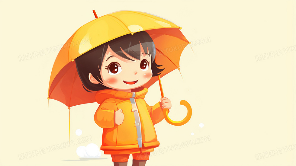 本作品内容为打着黄色雨伞穿着雨衣的小女孩插画, 格式为 jpg, 大小4 MB, 图片尺寸为2912 x 1632, 源文件无水印, 欢迎使用熊猫办公。 如认为平台内容涉嫌侵权,可通过邮件:tousu@tukuppt.com提出书面通知,我们将及时处理。
