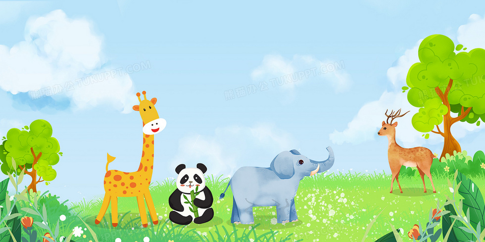 本作品内容为卡通草地环保保护动物背景, 格式为 psd, 大小54 MB, 图片尺寸为4724 x 2362, 作品中背景图片无需修改, 源文件无水印,可以直接使用, 欢迎使用熊猫办公。 如认为平台内容涉嫌侵权,可通过邮件:tousu@tukuppt.com提出书面通知,我们将及时处理。