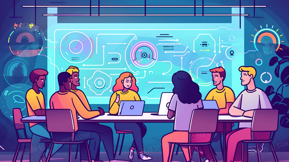 本作品内容为彩色职场商务会谈信息交流插画, 格式为 jpg, 大小5 MB, 图片尺寸为2912 x 1632, 源文件无水印, 欢迎使用熊猫办公。 如认为平台内容涉嫌侵权,可通过邮件:tousu@tukuppt.com提出书面通知,我们将及时处理。