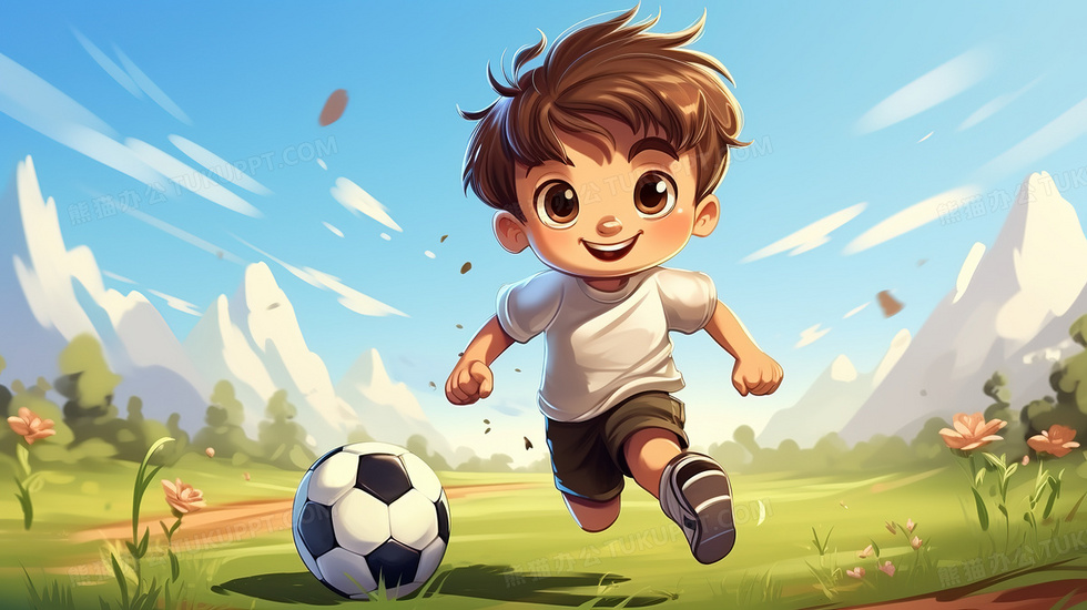 本作品内容为可爱卡通男孩开心的踢足球创意插画, 格式为 jpg, 大小5 MB, 图片尺寸为2912 x 1632, 源文件无水印, 欢迎使用熊猫办公。 如认为平台内容涉嫌侵权,可通过邮件:tousu@tukuppt.com提出书面通知,我们将及时处理。