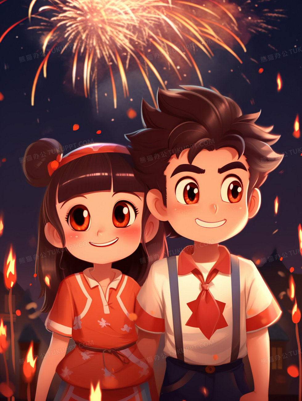 本作品内容为放烟花的卡通人物春节节气插画, 格式为 jpg, 大小4 MB, 图片尺寸为1856 x 2464, 源文件无水印, 欢迎使用熊猫办公。 如认为平台内容涉嫌侵权,可通过邮件:tousu@tukuppt.com提出书面通知,我们将及时处理。