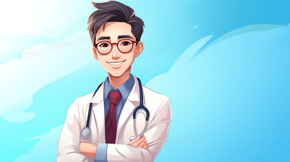 本作品内容为穿白大褂的帅气男医生插画, 格式为 jpg, 大小4 MB, 图片尺寸为2912 x 1632, 源文件无水印, 欢迎使用熊猫办公。 如认为平台内容涉嫌侵权,可通过邮件:tousu@tukuppt.com提出书面通知,我们将及时处理。