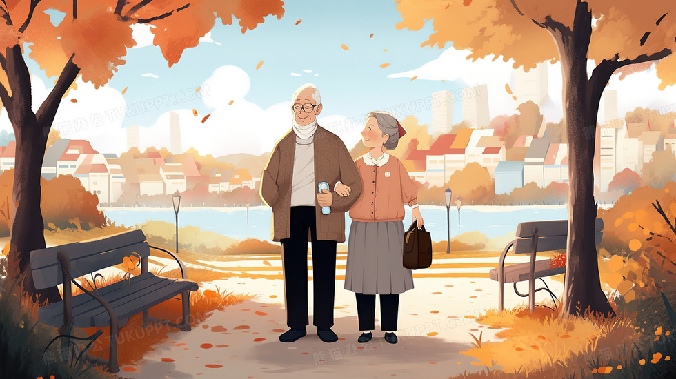本作品内容为重阳节一对老夫妇公园里散心插画, 格式为 jpg, 大小3 MB, 图片尺寸为2912 x 1632, 源文件无水印, 欢迎使用熊猫办公。 如认为平台内容涉嫌侵权,可通过邮件:tousu@tukuppt.com提出书面通知,我们将及时处理。