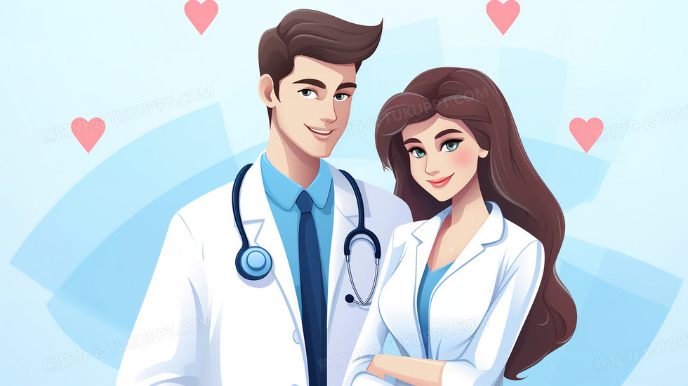 本作品内容为中国医师节情侣医生卡通商务插画, 格式为 jpg, 大小4 MB, 图片尺寸为2912 x 1632, 源文件无水印, 欢迎使用熊猫办公。 如认为平台内容涉嫌侵权,可通过邮件:tousu@tukuppt.com提出书面通知,我们将及时处理。