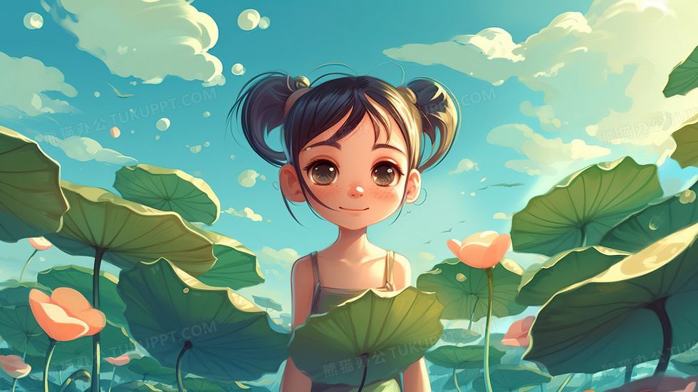本作品内容为绿色唯美卡通荷叶上的女孩插画, 格式为 jpg, 大小6 MB, 图片尺寸为2912 x 1632, 源文件无水印, 欢迎使用熊猫办公。 如认为平台内容涉嫌侵权,可通过邮件:tousu@tukuppt.com提出书面通知,我们将及时处理。