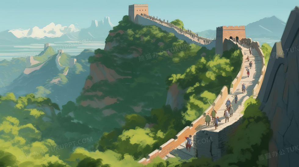 本作品内容为爬长城的人物风景插画, 格式为 jpg, 大小5 MB, 图片尺寸为2912 x 1632, 源文件无水印, 欢迎使用熊猫办公。 如认为平台内容涉嫌侵权,可通过邮件:tousu@tukuppt.com提出书面通知,我们将及时处理。