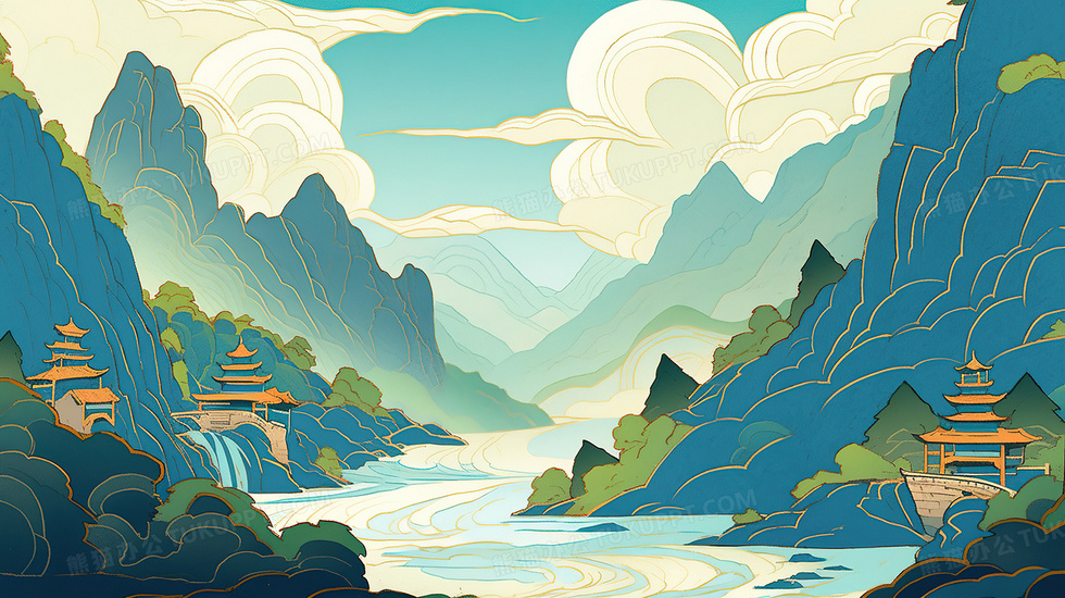 本作品内容为创意国潮中国风山水风景画, 格式为 jpg, 大小7 MB, 图片尺寸为2912 x 1632, 源文件无水印, 欢迎使用熊猫办公。 如认为平台内容涉嫌侵权,可通过邮件:tousu@tukuppt.com提出书面通知,我们将及时处理。