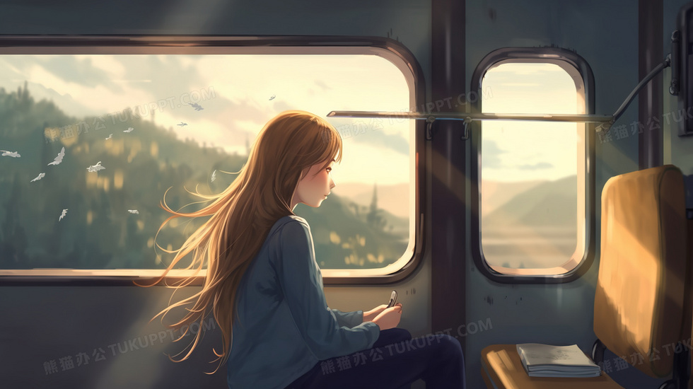 本作品内容为列车上唯美卡通女孩逆光人物插画, 格式为 jpg, 大小4 MB, 图片尺寸为2912 x 1632, 源文件无水印, 欢迎使用熊猫办公。 如认为平台内容涉嫌侵权,可通过邮件:tousu@tukuppt.com提出书面通知,我们将及时处理。