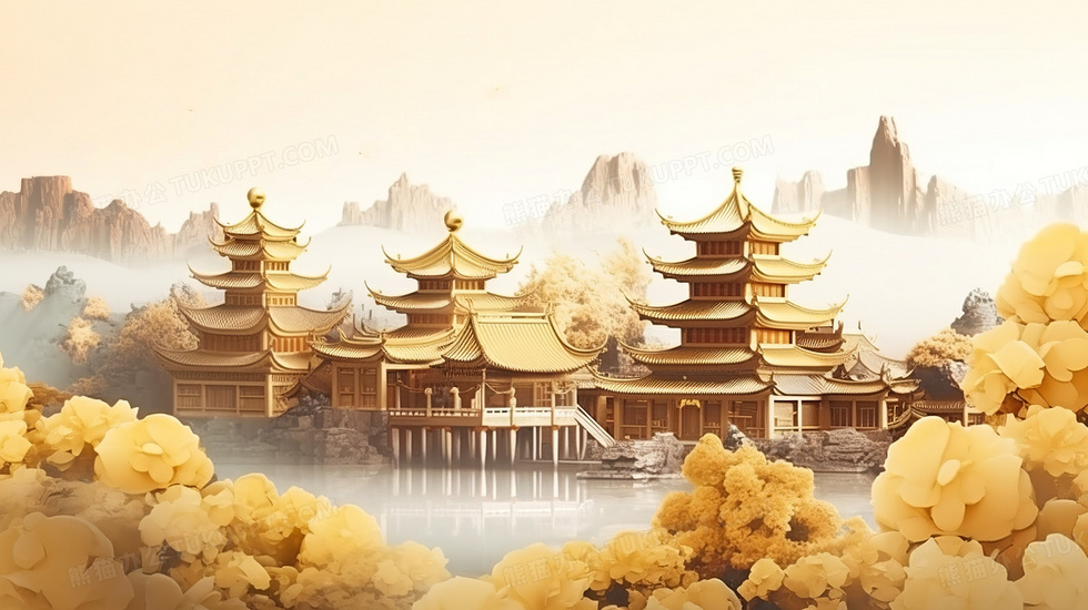本作品内容为金色奢华大气创意中国风中式园林建筑亭台楼阁创意插画, 格式为 jpg, 大小3 MB, 图片尺寸为2912 x 1632, 源文件无水印, 欢迎使用熊猫办公。 如认为平台内容涉嫌侵权,可通过邮件:tousu@tukuppt.com提出书面通知,我们将及时处理。
