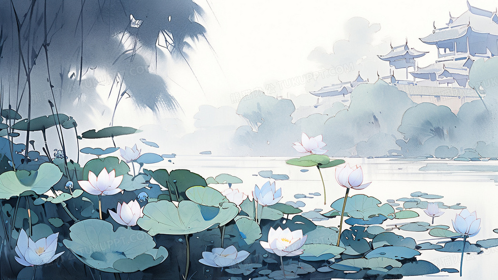 本作品内容为水墨中国风荷花池塘古风插画, 格式为 jpg, 大小3 MB, 图片尺寸为2912 x 1632, 源文件无水印, 欢迎使用熊猫办公。 如认为平台内容涉嫌侵权,可通过邮件:tousu@tukuppt.com提出书面通知,我们将及时处理。