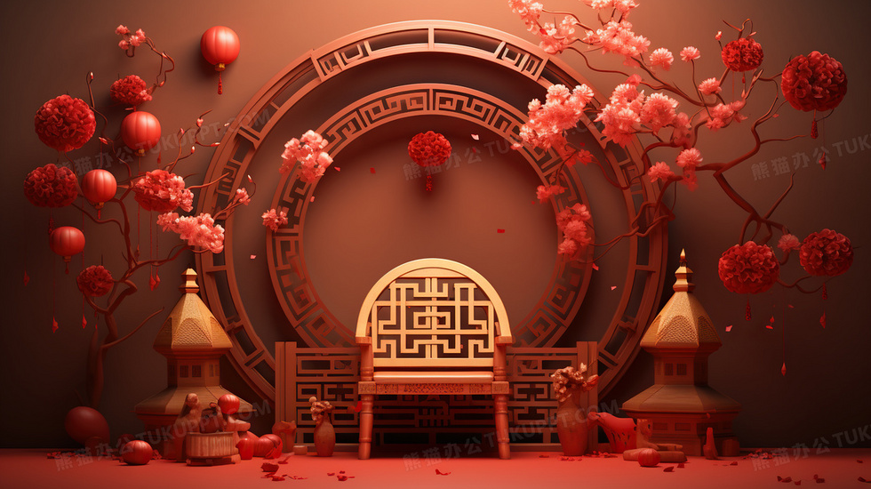 本作品内容为2024新年龙年喜庆C4D商品展台插画, 格式为 jpg, 大小6 MB, 图片尺寸为2912 x 1632, 源文件无水印, 欢迎使用熊猫办公。 如认为平台内容涉嫌侵权,可通过邮件:tousu@tukuppt.com提出书面通知,我们将及时处理。