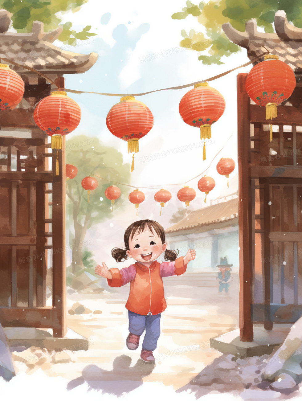 首页 > 插画 > 科技艺术 > 水彩手绘 > 在老家过年快乐玩耍的小女孩插画