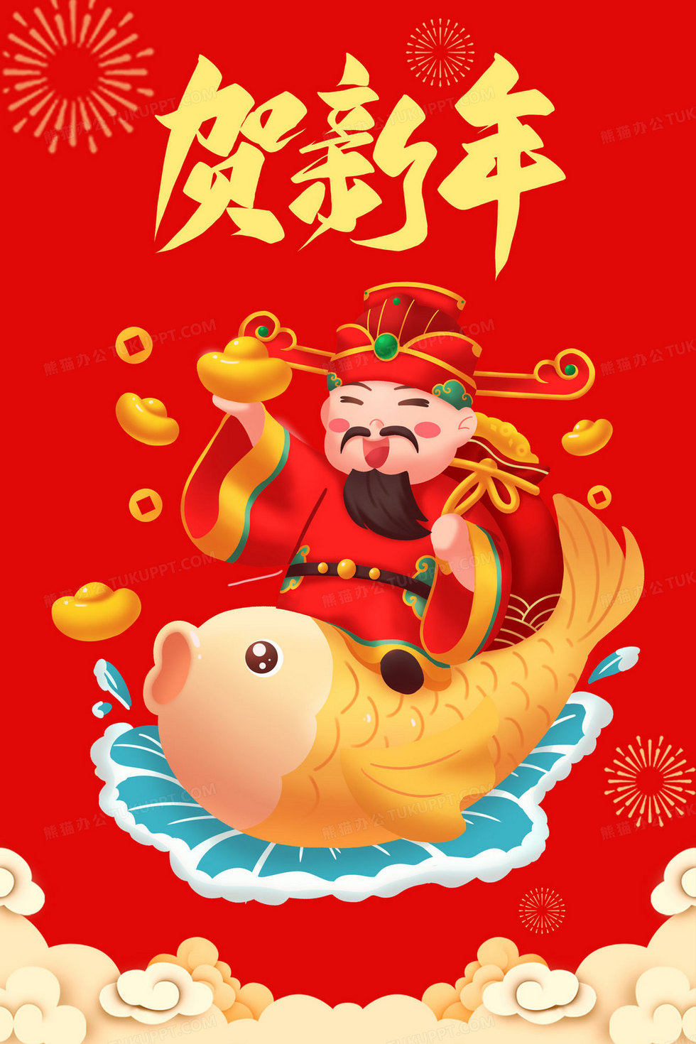 本作品内容为2024财神爷贺新年插画, 格式为 psd, 大小14 MB, 请使用软件PhotoShop(CC)打开, 源文件无水印, 欢迎使用熊猫办公。 如认为平台内容涉嫌侵权,可通过邮件:tousu@tukuppt.com提出书面通知,我们将及时处理。