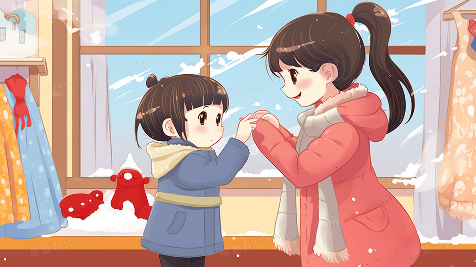 本作品内容为冬天降温室内母亲关心孩子插画, 格式为 jpg, 大小5 MB, 图片尺寸为2912 x 1632, 源文件无水印, 欢迎使用熊猫办公。 如认为平台内容涉嫌侵权,可通过邮件:tousu@tukuppt.com提出书面通知,我们将及时处理。
