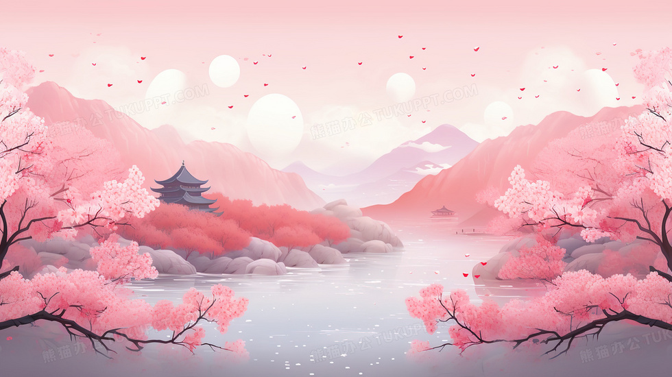 本作品内容为春天粉色调山水梅花树插画, 格式为 jpg, 大小5 MB, 图片尺寸为2912 x 1632, 源文件无水印, 欢迎使用熊猫办公。 如认为平台内容涉嫌侵权,可通过邮件:tousu@tukuppt.com提出书面通知,我们将及时处理。