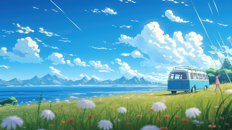 本作品内容为春天蓝天下海边草地上的小型巴士插画, 格式为 jpg, 大小5 MB, 图片尺寸为2912 x 1632, 源文件无水印, 欢迎使用熊猫办公。 如认为平台内容涉嫌侵权,可通过邮件:tousu@tukuppt.com提出书面通知,我们将及时处理。