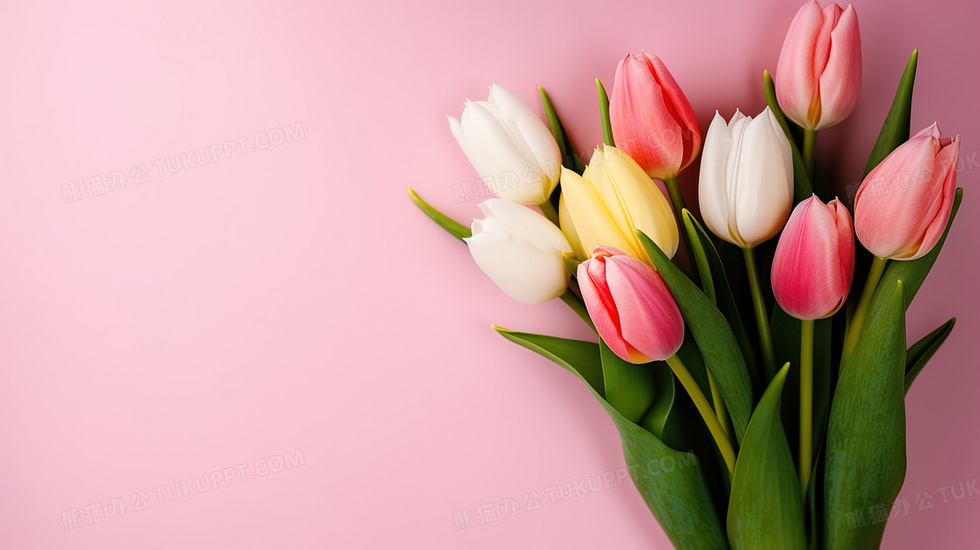 本作品内容为一束彩色郁金香在粉色背景上插画, 格式为 jpg, 大小4 MB, 图片尺寸为2912 x 1632, 源文件无水印, 欢迎使用熊猫办公。 如认为平台内容涉嫌侵权,可通过邮件:tousu@tukuppt.com提出书面通知,我们将及时处理。