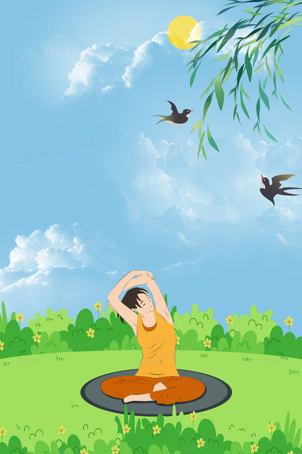 本作品内容为小清新草地健康养生瑜伽背景, 格式为 psd, 大小63 MB, 图片尺寸为3543 x 5315, 作品中背景图片无需修改, 源文件无水印,可以直接使用, 欢迎使用熊猫办公。 如认为平台内容涉嫌侵权,可通过邮件:tousu@tukuppt.com提出书面通知,我们将及时处理。