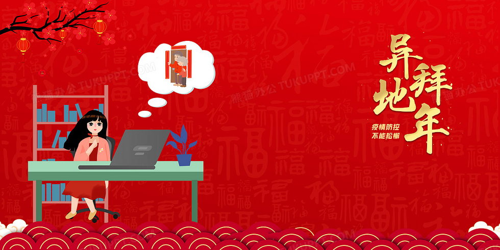 本作品内容为创意红色简约春节防疫异地视频拜年背景, 格式为 psd, 大小44 MB, 图片尺寸为7087 x 3543, 作品中背景图片无需修改, 源文件无水印,可以直接使用, 欢迎使用熊猫办公。 如认为平台内容涉嫌侵权,可通过邮件:tousu@tukuppt.com提出书面通知,我们将及时处理。
