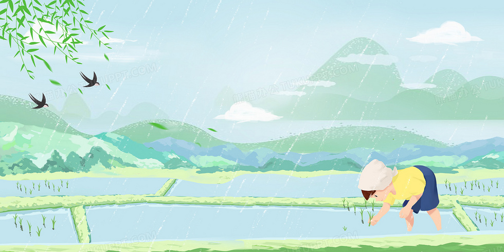 本作品内容为谷雨插秧农民播种卡通农田背景, 格式为 psd, 大小23 MB, 图片尺寸为4724 x 2362, 作品中背景图片无需修改, 源文件无水印,可以直接使用, 欢迎使用熊猫办公。 如认为平台内容涉嫌侵权,可通过邮件:tousu@tukuppt.com提出书面通知,我们将及时处理。