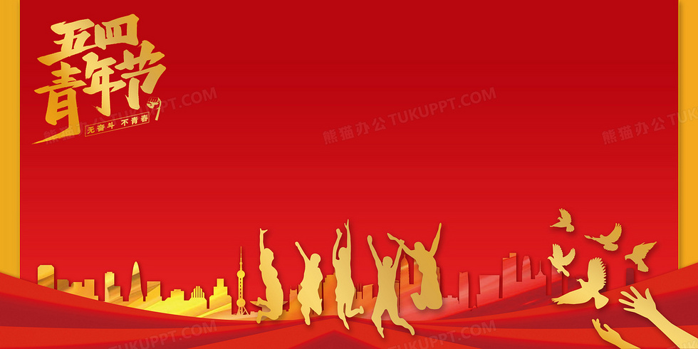 本作品内容为青年节简约红金奔跑背景, 格式为 psd, 大小8 MB, 图片尺寸为4724 x 2362, 作品中背景图片无需修改, 源文件无水印,可以直接使用, 欢迎使用熊猫办公。 如认为平台内容涉嫌侵权,可通过邮件:tousu@tukuppt.com提出书面通知,我们将及时处理。