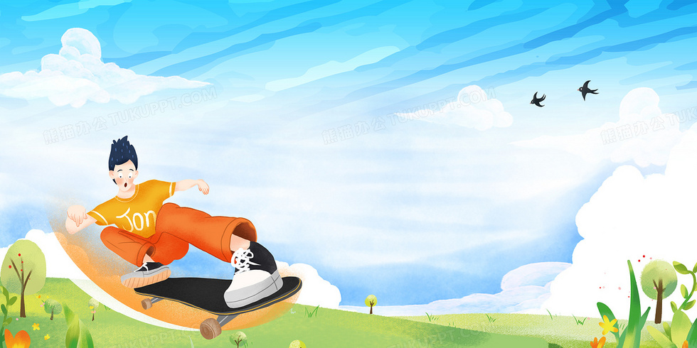 本作品内容为轮滑运动滑板招新卡通背景, 格式为 psd, 大小31 MB, 图片尺寸为4724 x 2362, 作品中背景图片无需修改, 源文件无水印,可以直接使用, 欢迎使用熊猫办公。 如认为平台内容涉嫌侵权,可通过邮件:tousu@tukuppt.com提出书面通知,我们将及时处理。