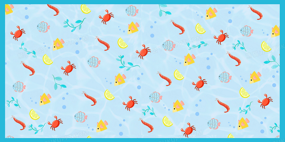 本作品内容为美食海鲜龙虾螃蟹卡通底纹背景, 格式为 psd, 大小8 MB, 图片尺寸为4724 x 2362, 作品中背景图片无需修改, 源文件无水印,可以直接使用, 欢迎使用熊猫办公。 如认为平台内容涉嫌侵权,可通过邮件:tousu@tukuppt.com提出书面通知,我们将及时处理。
