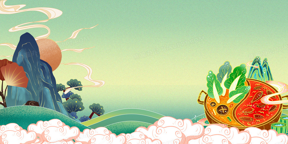本作品内容为国潮来袭创意火锅背景, 格式为 psd, 大小42 MB, 图片尺寸为2362 x 1181, 作品中背景图片无需修改, 源文件无水印,可以直接使用, 欢迎使用熊猫办公。 如认为平台内容涉嫌侵权,可通过邮件:tousu@tukuppt.com提出书面通知,我们将及时处理。