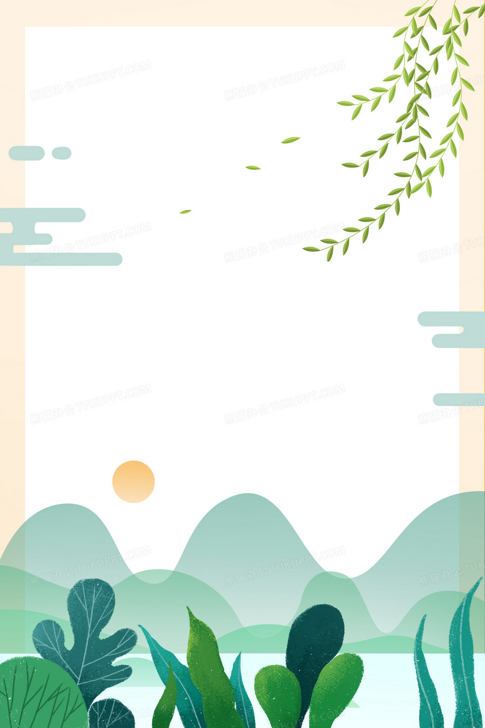 本作品内容为清新矢量卡通典雅青山绿水植物背景, 格式为 psd, 大小13 MB, 图片尺寸为2362 x 3543, 作品中背景图片无需修改, 源文件无水印,可以直接使用, 欢迎使用熊猫办公。 如认为平台内容涉嫌侵权,可通过邮件:tousu@tukuppt.com提出书面通知,我们将及时处理。