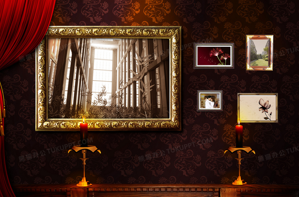 本作品内容为欧式古典家居风格照片墙海报背景素材, 格式为 psd, 图片尺寸为3500 x 2300, 作品中背景图片无需修改, 源文件无水印,可以直接使用, 欢迎使用熊猫办公。 如认为平台内容涉嫌侵权,可通过邮件:tousu@tukuppt.com提出书面通知,我们将及时处理。