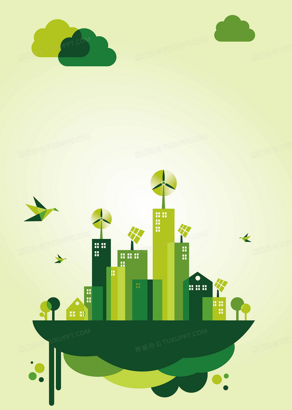 本作品内容为矢量扁平化绿色城市环保背景, 格式为 ai, 图片尺寸为4355 x 6115, 作品中背景图片无需修改, 源文件无水印,可以直接使用, 欢迎使用熊猫办公。 如认为平台内容涉嫌侵权,可通过邮件:tousu@tukuppt.com提出书面通知,我们将及时处理。