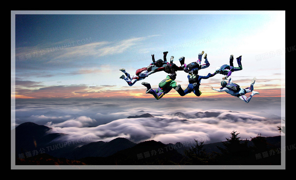 本作品内容为团队跳伞跨越企业精神背景, 格式为 psd, 图片尺寸为4843 x 2953, 作品中背景图片无需修改, 源文件无水印,可以直接使用, 欢迎使用熊猫办公。 如认为平台内容涉嫌侵权,可通过邮件:tousu@tukuppt.com提出书面通知,我们将及时处理。